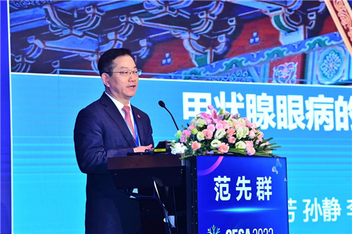 MMC創(chuàng)始人、中國內(nèi)分泌代謝病專科聯(lián)盟主席、上海交通大學(xué)醫(yī)學(xué)院附屬瑞金醫(yī)院院長、中國工程院寧光院士在致辭中說道,“今年,MMC實現(xiàn)了“雙1000”目標,即:“建立1000家MMC中心,管理1000萬糖尿病患者”當中的第一個目標。這離不開在座的每一位同道的信任、堅持和付出!全國MMC就是一個大家庭,所有的醫(yī)護人員同心協(xié)力,共同扮演著代謝病患者的健康衛(wèi)士角色。在大家的共同努力下,患者的糖化血紅蛋白達標率和代謝指標綜合達標率均顯著提升,達到或超越了國際先進水平。MMC的管理模式和系列研究成果也得到了國際國內(nèi)同行的高度肯定,同時,MMC即將落戶粵港澳大灣區(qū),為打造健康“一帶一路”打下重要基礎(chǔ)。而這些都進一步標志著MMC在積極響應(yīng)國家“健康中國”戰(zhàn)略的同時為我國代謝慢病管理帶來了重大變革和貢獻。” 大會舉行了隆重的MMC突破1000家盛典,中國工程院范先群院士、中國工程院寧光院士、朱大龍教授、趙家軍教授、嚴勵院長、谷衛(wèi)教授,國家標準化代謝性疾病管理中心省級分中心代表:劉萍教授、秦映芬教授、單忠艷教授、鄭超教授、吳勝利教授、陳蕾教授、王育璠教授、杜建玲教授、勵麗教授上臺,優(yōu)秀分中心代表:鄭啟東教授、戴元成教授、董其娟教授、徐鳳梅教授、姜冉華教授、顧雪疆教授、唐榮教授、齊敬霄教授,上海智眾醫(yī)療科技有限公司 CEO李振杰先生,阿斯利康商業(yè)創(chuàng)新執(zhí)行總監(jiān)王健先生一同上臺參與1000家醫(yī)院的落地慶典。范先群院士:甲狀腺眼病的發(fā)生機制和治療進展